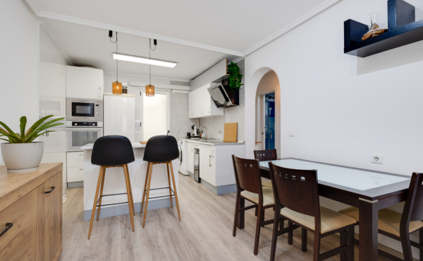 The community offers excellent amenities, including a communal swimming pool, a mini football pitch, and a tennis court. The location is truly outstanding—just a short walk to the Habaneras shopping center, as well as schools, bars, and restaurants. Everything you need is close at hand, making this apartment an ideal choice for comfortable and convenient living.